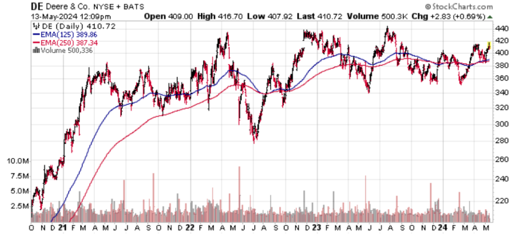 03/22/’22 — Today, in selected portfolios, I purchased Deere (de) at $430.3567. For more information on de, please click here.